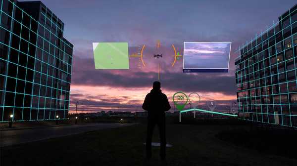 AirHUD™ displays the drone in augmented reality, 3D maps, restriction zones or air traffic around the drone in real time by using XR glasses.